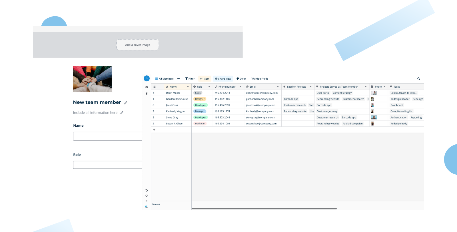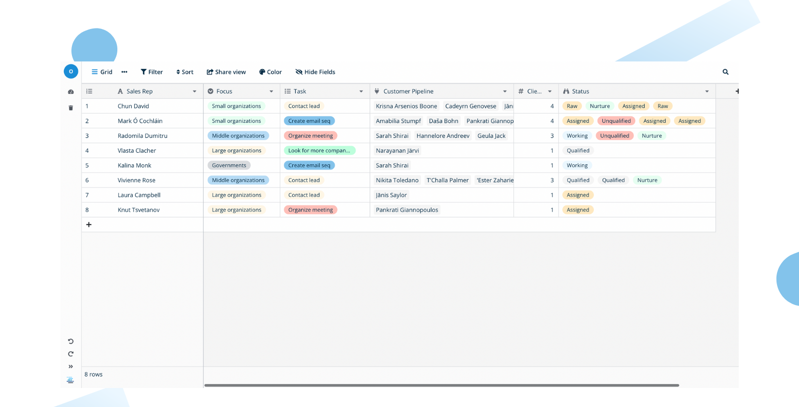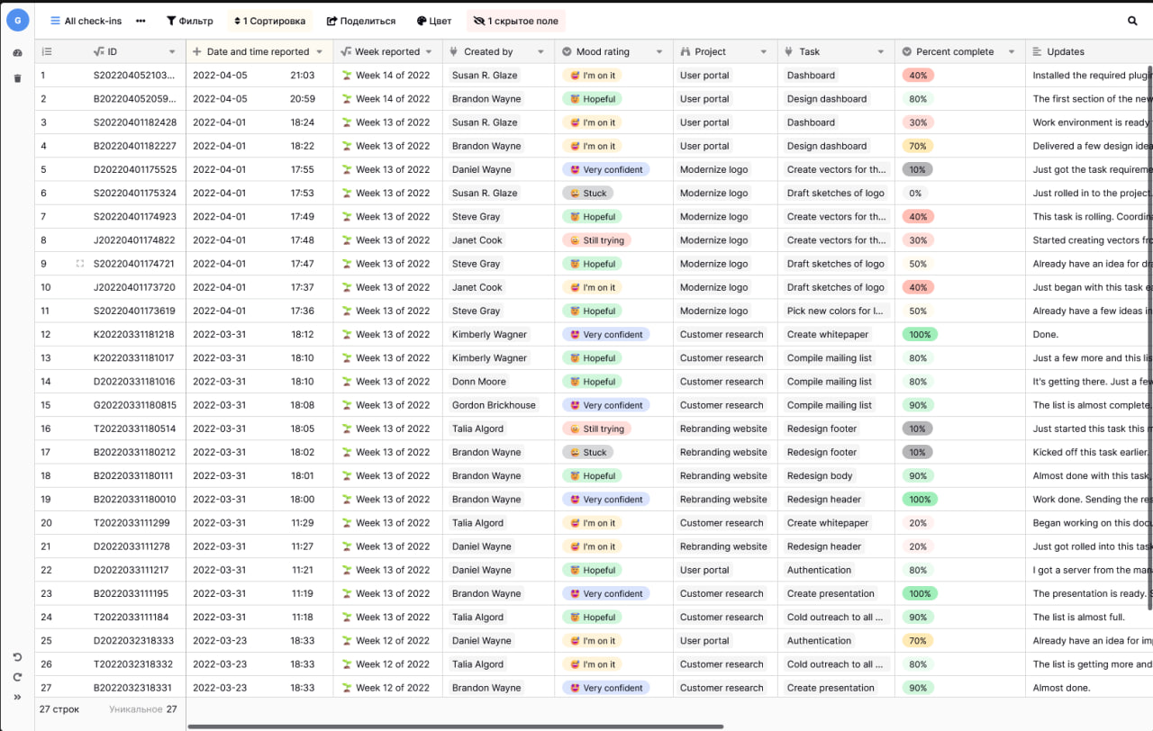 Как посредники между клиентами, агентствам приходится управлять множеством процессов. Датабаза помогает структурировать рабочие процессы по клиентам и отслеживать все детали, такие как распределение проектов и задачи.