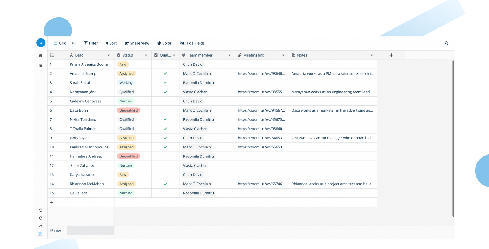 Легко создавайте комплексные рабочие процессы для всех нужд продаж – от квалификации лидов до заметок о встречах.- Ведите список всех возможностей/контактов