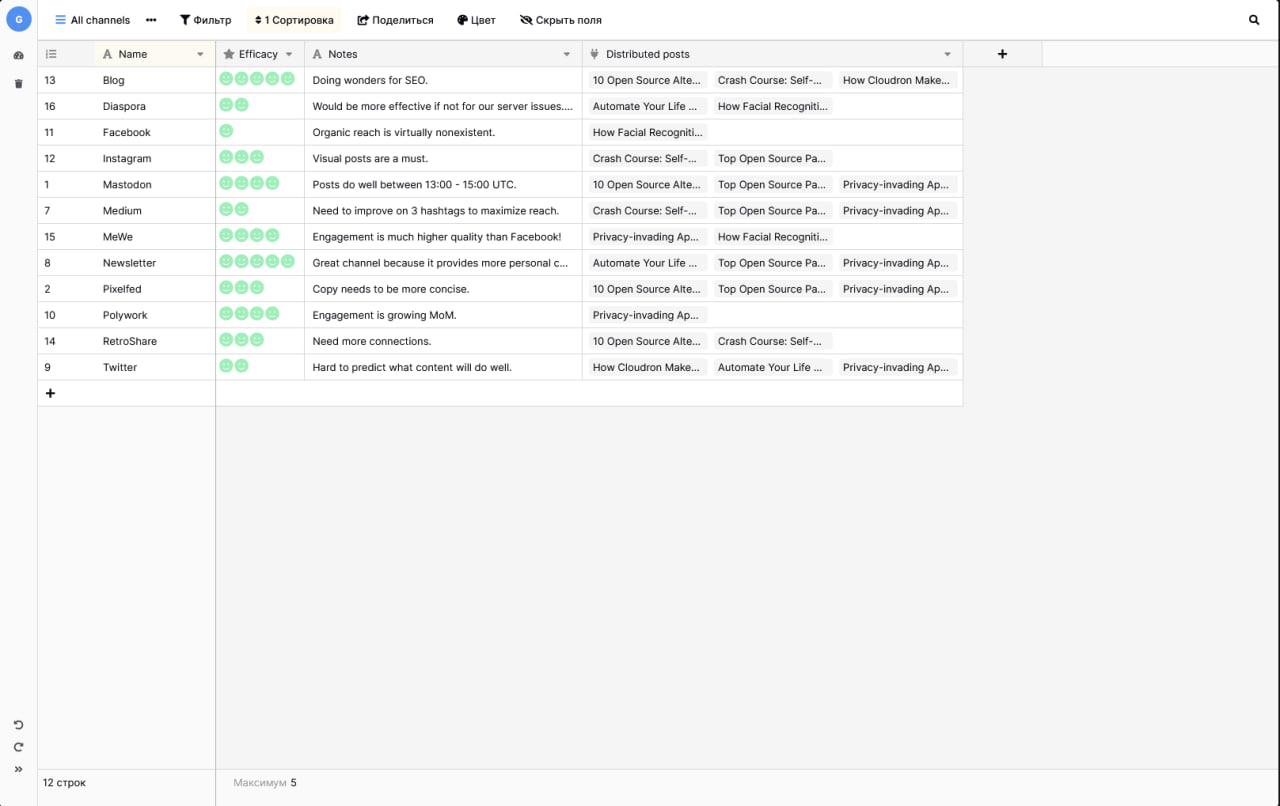 Датабаза предлагает множество возможностей для управления маркетинговыми рабочими процессами — от email-кампаний до планирования публикаций в социальных сетях.